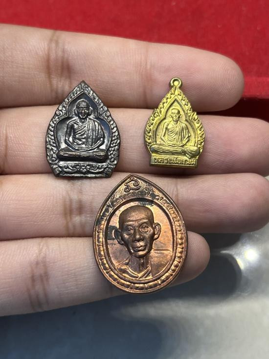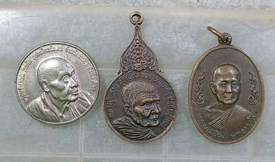 เหรียญที่ระลึกครบ5รอบ60พรรษาอุปสมบท หลวงพ่อเกษม เขมโก +เหรียญ หลวงปู่แหวน รุ่นสิงหนาท หลังพระธาตุดอยกองมู แม่ฮ่องสอน ปี 27 +เหรียญกนกข้าง หลวงปู่สิม หลังพระพุทธประธานพร ปี20 |