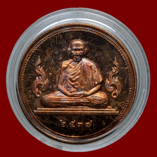 วัดใจเคาะเดียว.......100......เหรียญรูปเหมือนนั่งพาน หลวงพ่อเกษม เขมโก รุ่นเสาร์ห้ามงคลเกษม ตอกโค๊ต ปี2537 สวย |