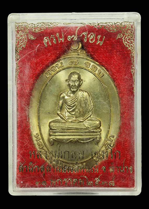 ล็อกเก็ตหลวงพ่อเกษม เขมโก ฉากทอง บารมี81 ปี 2535 ด้านหลังมี ก้านธูป ผงธูปมงคลหลวงพ่อ จีวร เกศา และของมงคลอีกมากมายในพิมพ์ชัดเจน ขนาดพอดีสวยสมบูรณ์ |