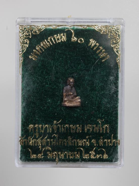 พระปิดตาอรหัง เนื้อผงธูปภาวนา หลวงพ่อเกษม เขมโก จ.ลำปาง ปี2535 ฝังตะกรุดเงิน สภาพสวยพร้อมกล่องเดิม |