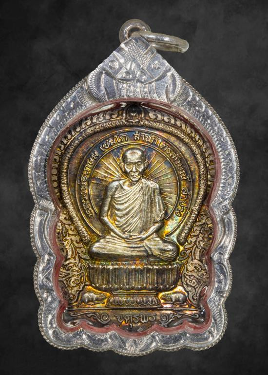 เหรียญ จตุพร หลวงพ่อเกษมเนื้อเงินรุ่นแรก เลข ๘๖๘ สวยๆๆ พร้อมเลี่ยมเงิน |