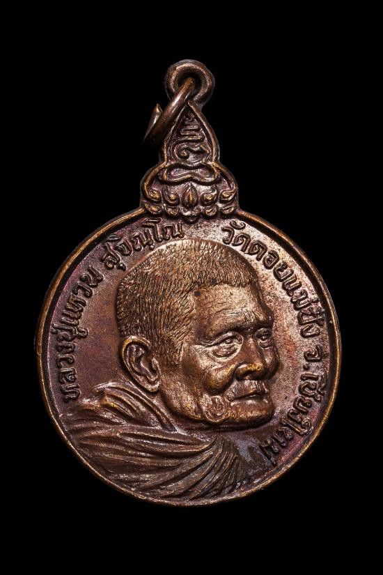 เหรียญหลวงปู่แหวน วัดดอยแม่ปั๋ง รุ่นสร้างตึกโรงพยาบาล หลัง ภปร.(เล็ก) ปี 2521 เนื้อทองแดง |