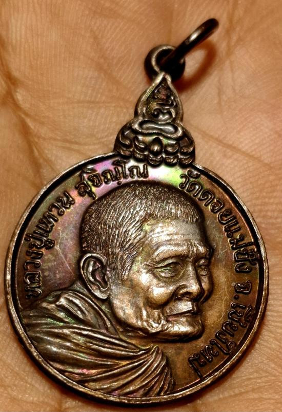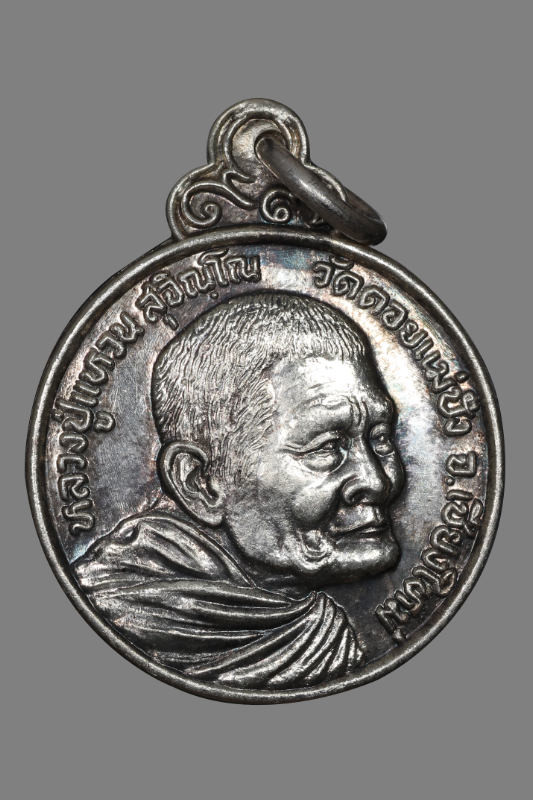 เหรียญหน้าวัวหลวงปู่แหวน วัดดอยแม่ปั๋งพ.ศ.2520รุ่นเมตตา เนื้อเงินสวยแชมป์ผิวรุ้งลายเสือครบสูตร |