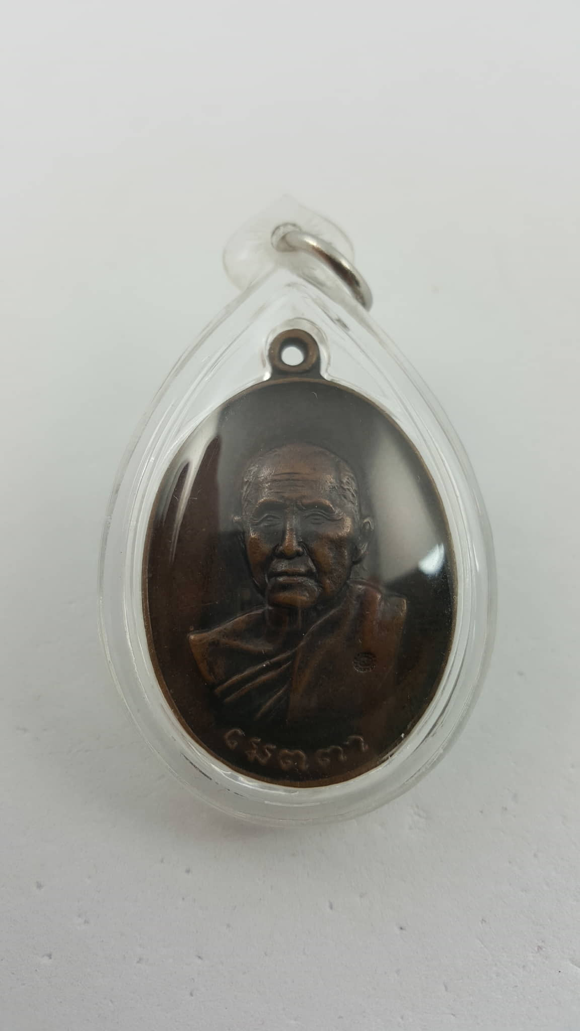 พระปิดตาสาลิกาหลังรูปเหมือนหลวงพ่อเกษม รุ่นลาภผล พูนทวี ซินน ี้ฮวดไช้ เนื้อนวโลหะ |
