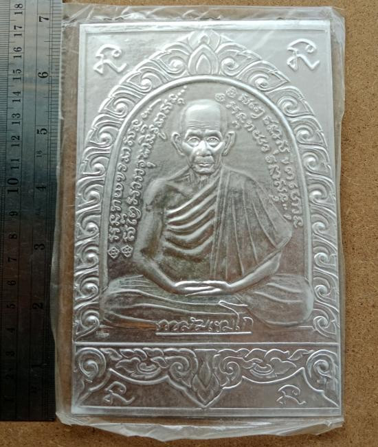 แผ่นปั๊ม หลวงพ่อเกษม ขนาด 11 X 17 ซม เนื้อแป๊ะตั๋งผสมเงิน ตอกโค้ด อยู่ในซองเดิมๆ ตามรูป |