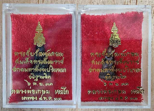 เคาะเดียวแดง 2องค์ พระกริ่งเกษม-ญสส เนื้อทองผสม ปี 2533 กล่องเดิม |