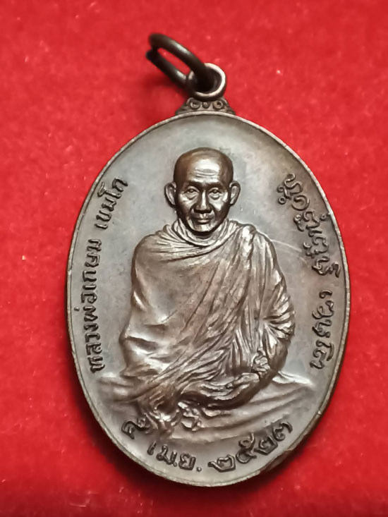 เหรียญหลวงพ่อเกษม รุ่นครบ 5 รอบ เนื้อทองแดง ปี 2515 พร้อมบัตรรับรอง |