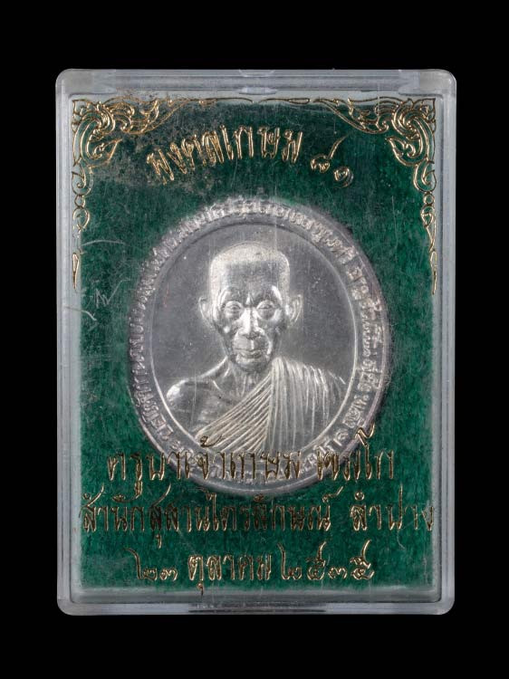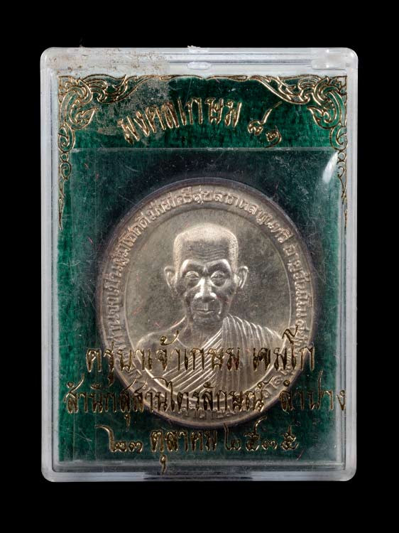 ล็อกเก็ต ร.๕ หลวงพ่อเกษม เขมโก หลังแผ่นเงิน ปี 2535 สวยๆ สมบูรณ์ ตอกโค๊ดนะ มีหมายเลขชัดเจน |