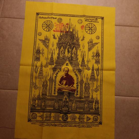 ผืนใหญ่..ขนาด19 X 29 นิ้ว... ผ้ายันต์ครอบจักรวาล 108 หลวงพ่อเกษม รุ่นพุทธคุณ ปี2538 เลข 560 ... 68.11.26 |