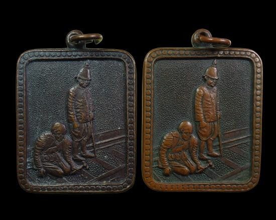 เคาะเดียวแดง.....เหรียญอนุสรณ์ปฐมฤกษ์รถไฟหลวง ร.5 ตอกหมุด เหรียญออก ปี 2520 เนื้อทองแดง หลวงพ่อเกษม เขมโก ปลุกเสก รับจำนวน 2 เหรียญ |