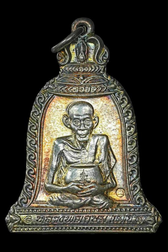 เหรียญระฆังหลวงพ่อเกษม รุ่นไม่ตาย พิมพ์จิ๋ว ปี 2537 เนื้อเงิน ตอกโค๊ด |