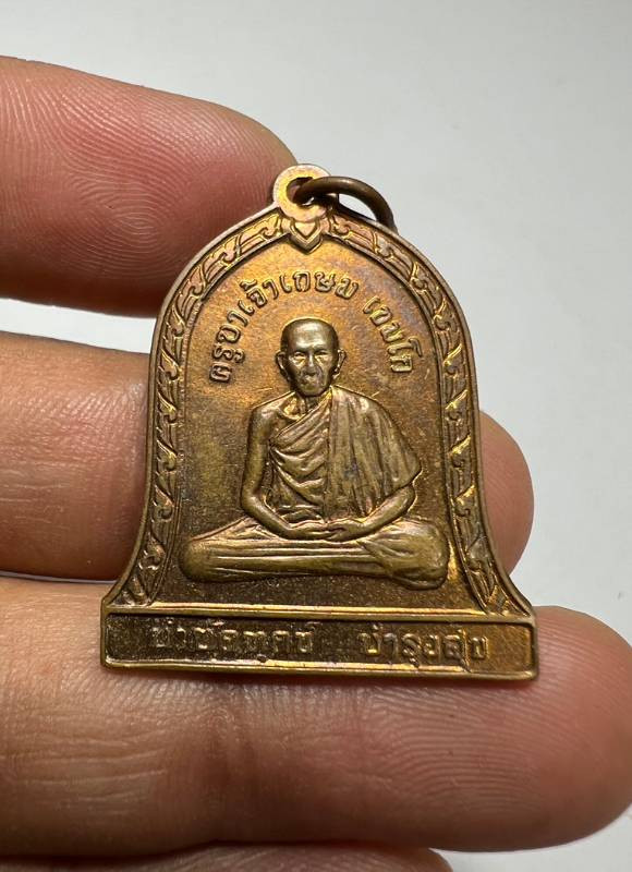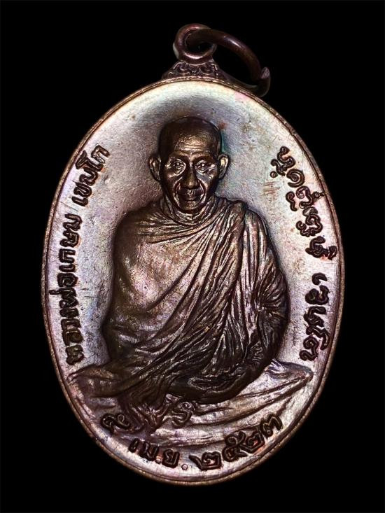 หลวงพ่อเกษม เขมโก เหรียญระฆังเซ็งลี้ฮ้อ ปี2536 ผิวติดรุ้งผิวเดิม นิยมศอกจุด |