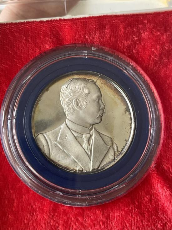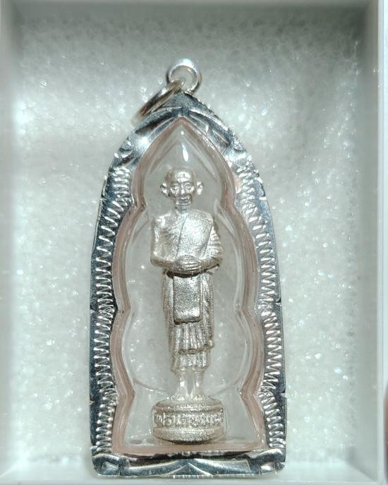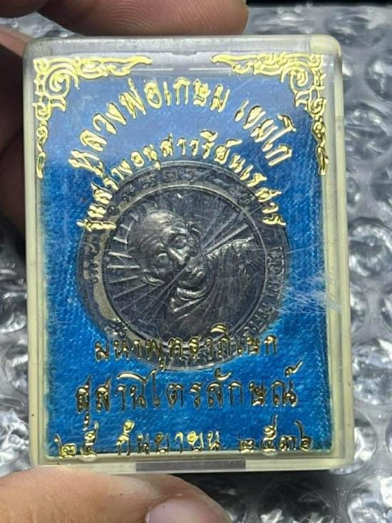 หลวงพ่อเกษม เขมโก รุ่นอนุสรณ์ นเรศวร เนื้อเงินพร้อมกล่องเดิม |