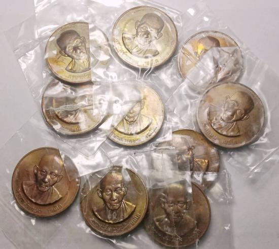 เคาะเดียวแดง เหรียญกลม ที่ระลึกวันพญาวัน เนื้อทองแดง บล็อคกองกษาปณ์ ปี 38 อยู่ในซีนเดิมๆ จำนวน 10 เหรียญ |