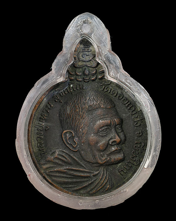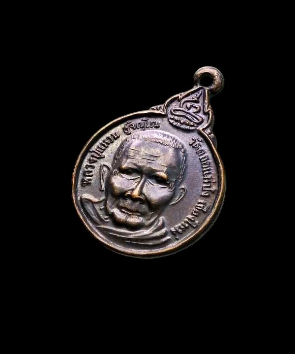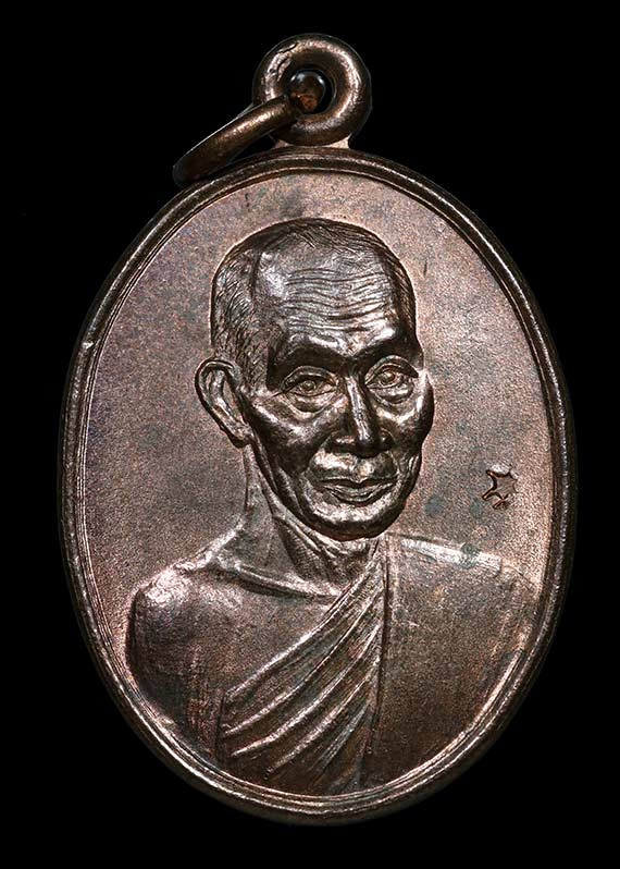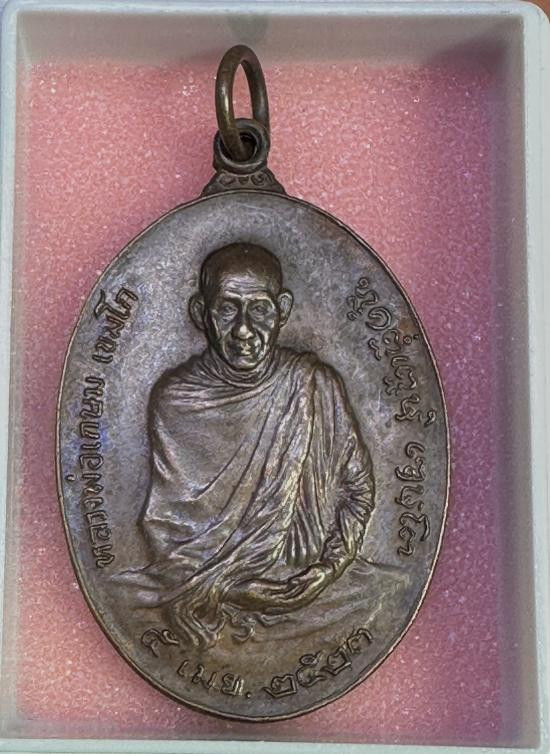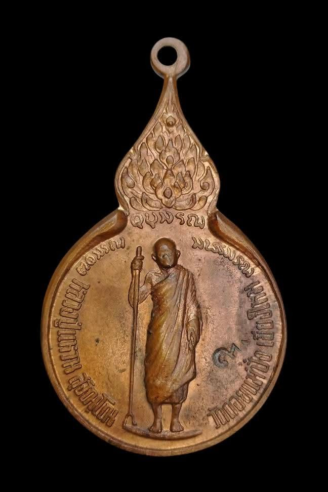 พระเหรียญ ลป.แหวน สุจิณโณ วัดดอยแม่ปั๋ง ยืนถือไม้เท้า รุ่นรวมใจ ปี2518 เนื้อทองแดง ตอกโค๊ดสวยงาม |
