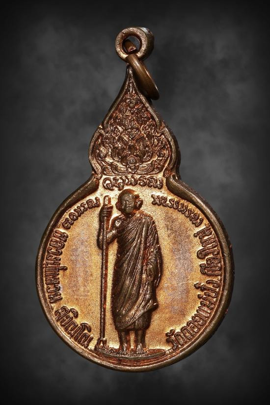 เหรียญยืนหลังพระปรมาภิไธยย่อ ภ.ป.ร. หลวงปู่แหวน สุจิณฺโณ วัดดอยแม่ปั๋ง อ.พร้าว จ.เชียงใหม่ ปี 2519 |