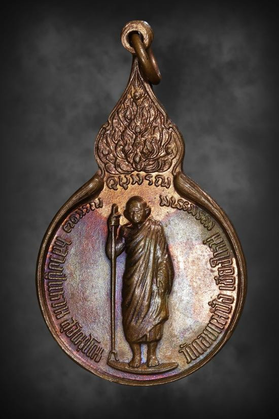 เหรียญรุ่นสังฆาฏิ หลวงปู่แหวน สุจิณโณ วัดดอยแม่ปั๋ง จ.เชียงใหม่ ปี พ.ศ 2520 ( ผิวรุ้ง |