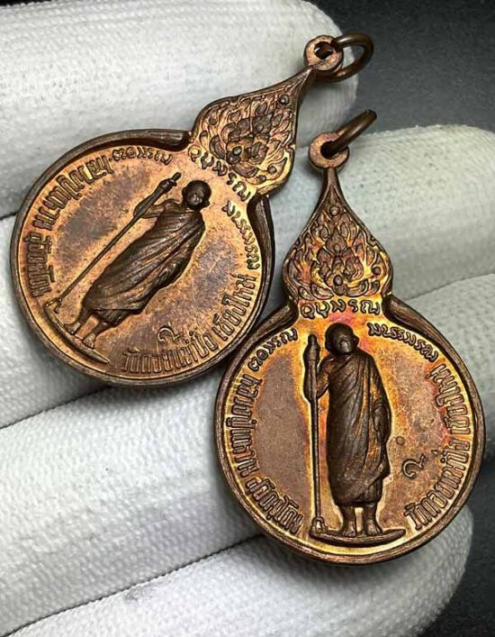 เคาะแดง(2500) 8 เหรียญ หลวงปู่แหวน พิมพ์ยืน หลังรางปืน เนื้อทองผิวไฟ ปี 2517 |