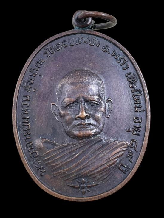 วัดใจ 100 .-/ เหรียญหลวงปู่แหวน วัดดอยแม่ปั๋ง เชียงใหม่ ปี2517 เขาค้อ วัดจัดสร้าง เนื้อทองแดงรมดำ |