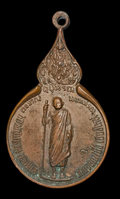 เหรียญยืนถือไม้เท้า หลวงปู่แหวน สุจิณฺโณ วัดดอยแม่ปั๋ง ปี 2518 ตอกโค๊ด |