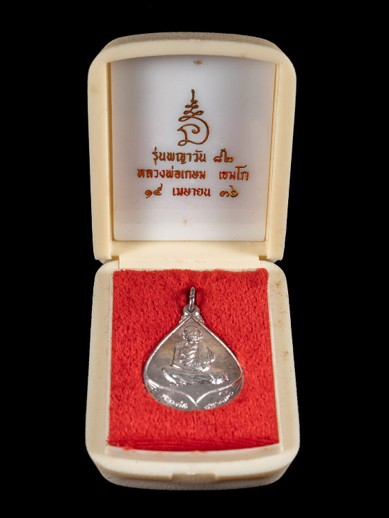 พระปิดตาสารพัดดี แช่น้ำมนต์ รุ่นพุทธคุณ เนื้อเงิน หลวงพ่อเกษม เขมโก ปี 2538 พร้อมกล่องเดิม |