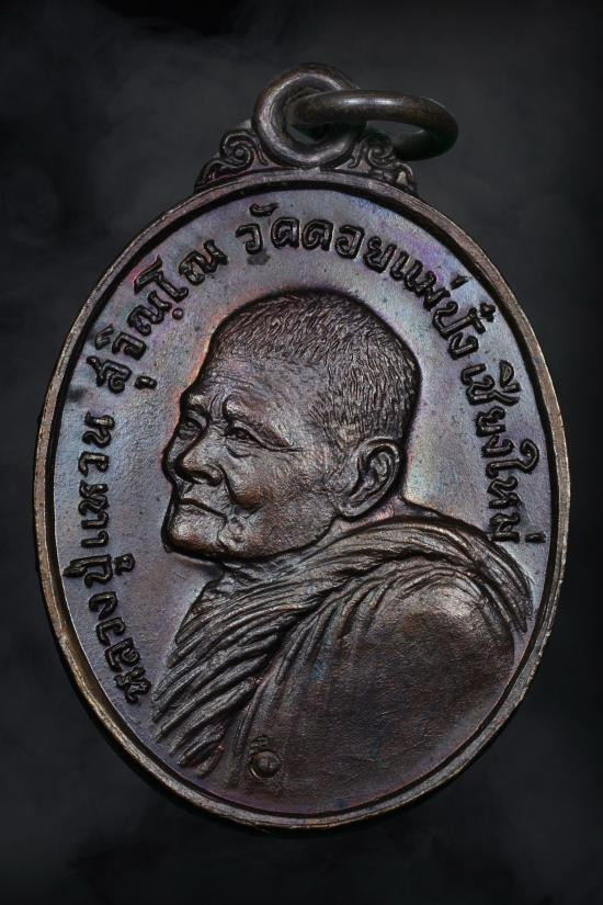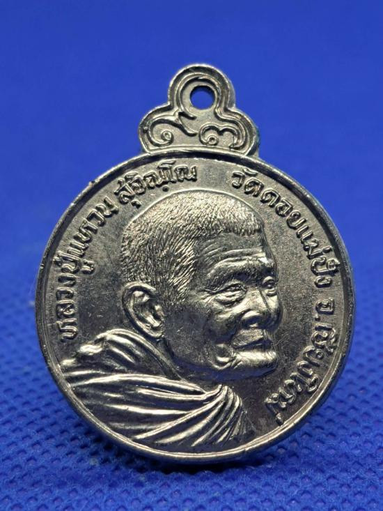 เหรียญฉลองอายุ 87 ปี หลวงปู่แหวน วัดดอยแม่ปั๋ง ปี 2519 เชียงใหม่(ห่วงเดิม) |