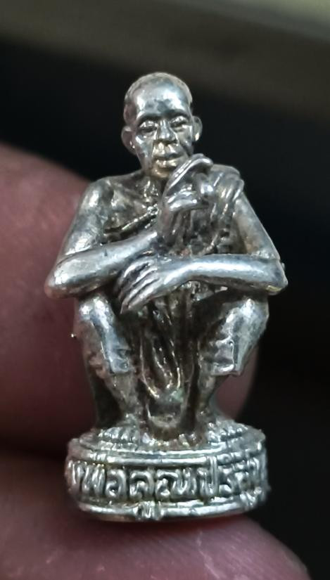 รูปหล่อหลวงพ่อคูณนั่งยองเนื้อเงิน ตอกโค๊ตคูณใต้ฐาน ไม่ทราบปี |