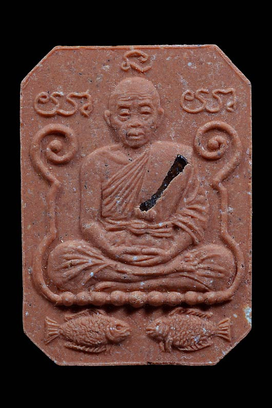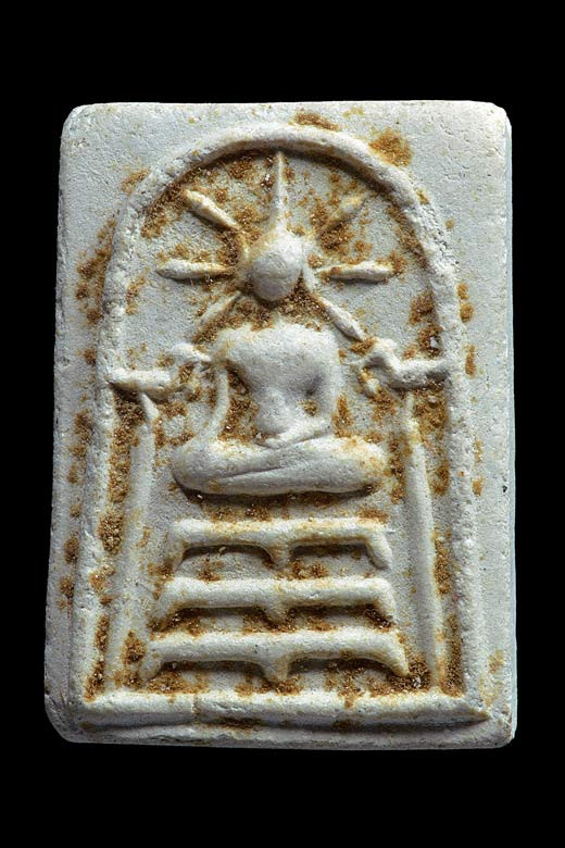 พระผงรูปเหมือนนั่งสมาธิ ( พิมพ์หลวงพ่อปาน ) รุ่น นำเงิน นำทอง ( เนื้อกระเบื้องหลังคาโบสถ์ ฝังตะกรุด ) พ.ศ.2536 ( กล่องเดิม ) |