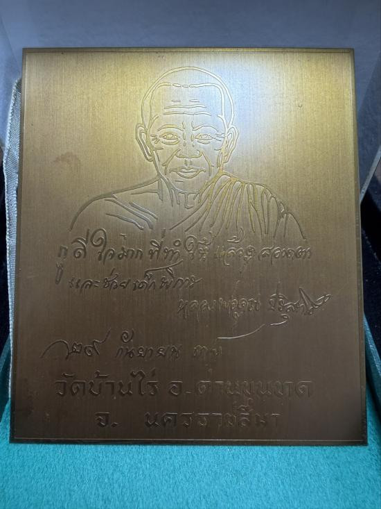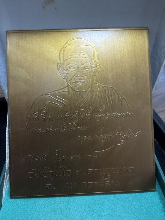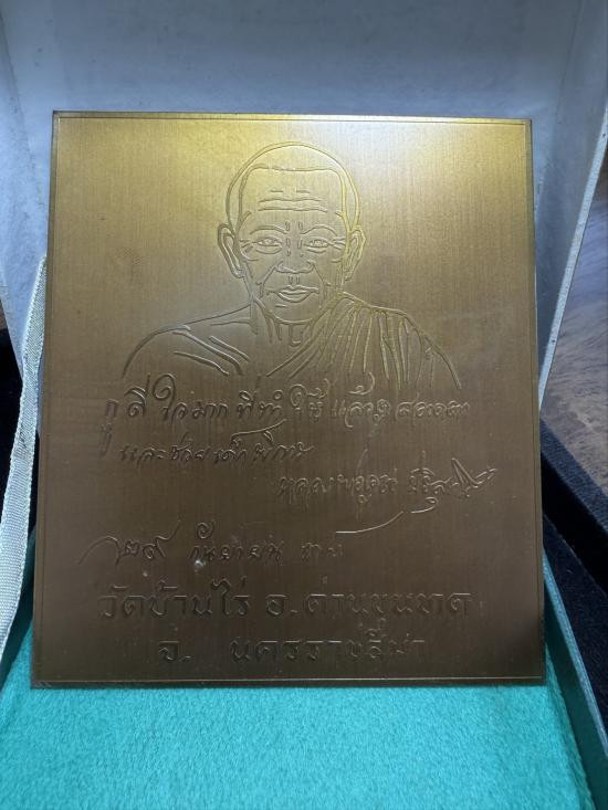 แผ่นปั้มเนื้อทองแดงหลังเรียบ หลวงพ่อคูณ วัดบ้านไร่ สร้างปี 2 538 ขนาด 3.5x4 นิ้ว พร้อมกล่อง |