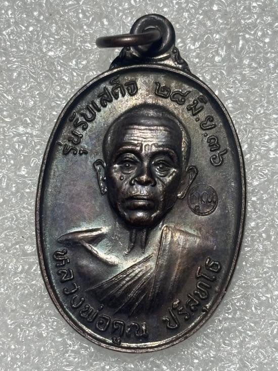 (เคาะเดียวแดง) เหรียญหลวงพ่อคุณ รุ่นรับเสด็จปี36 ผิวไฟ บล็อคหลังยาดม ช ขีด |