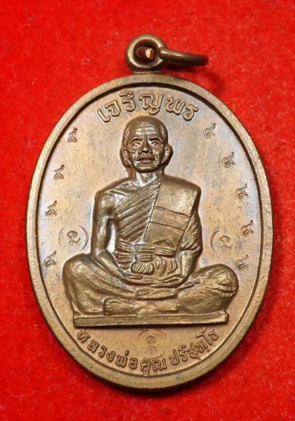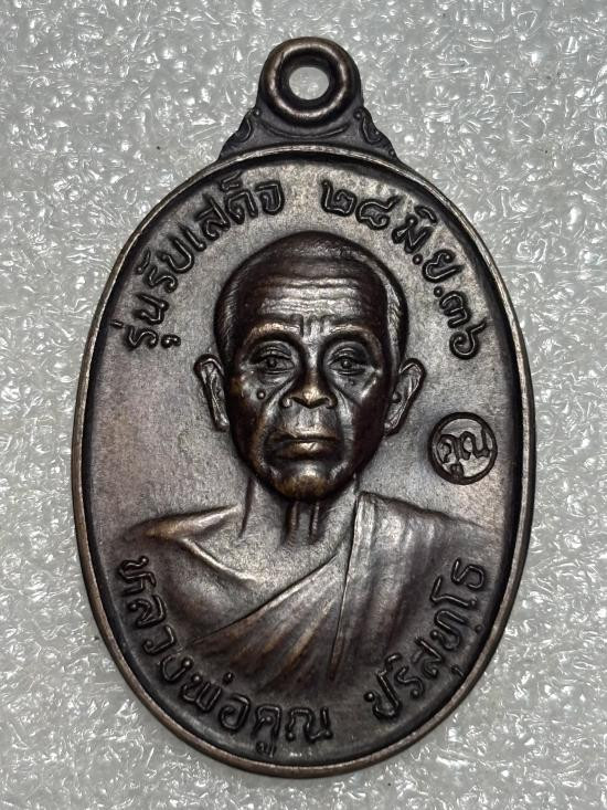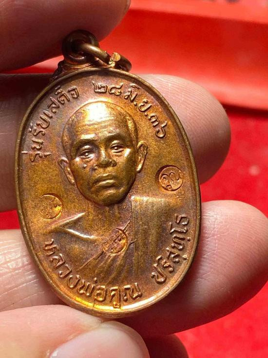 เหรียญนั่งพานหลวงพ่อคูณ วัดบ้านคลอง เนื้อทองแดง พร้อมกล่องเดิมๆ องค์ที่.5 |
