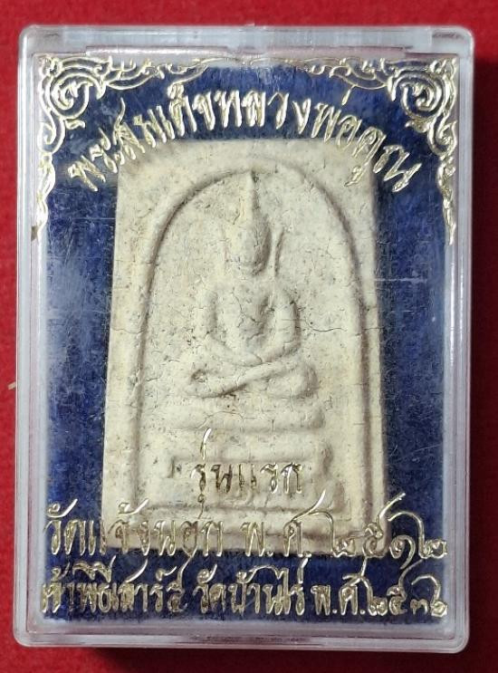 พระสมเด็จ-รุ่นแรก หลวงพ่อคูณ วัดบ้านไร่ จ.นครราชสีมา ปี2512 (พิมพ์เข่าบ่วง วัดแจ้งนอก จัดสร้าง สร้างพร้อมเหรียญรุ่นแรก ใช้มวลสารสมเด็จวัดระฆัง ปลุกเสก2วาระ เสาร์๕ ปี2536 สภาพสวย กล่องเดิม นิยม หายาก) |