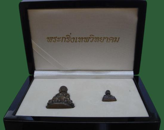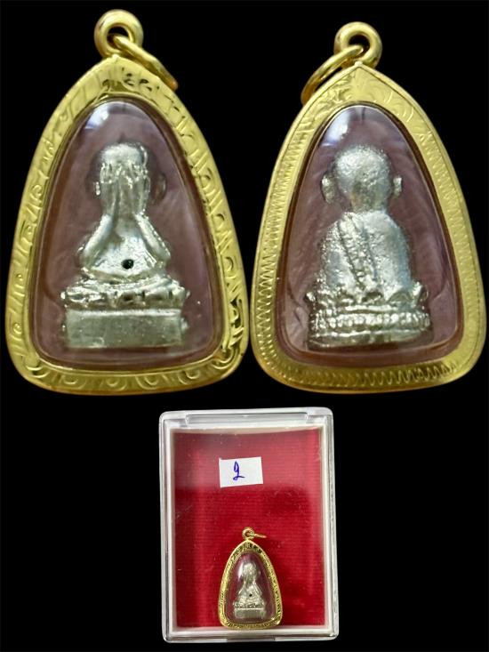 รูปเหมือนจิ๋วนั่งยองโป๊กโป๊ก รุ่นมั่งมีทวีคูณ2539 ชุดทองคำ เ งิน นวโลหะ |