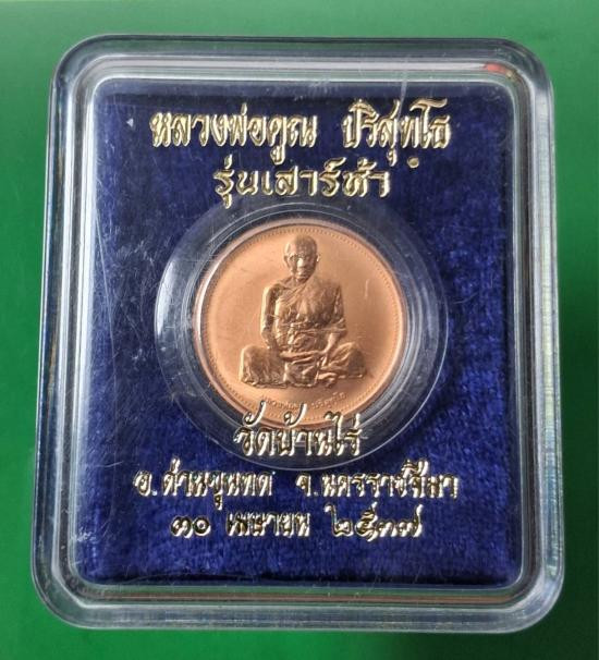 เหรียญหลวงพ่อคูณ รุ่นพิทักษ์ประชา สภ. อ.ศรีเทพ เนื้อทองแดง ปี 2537 |