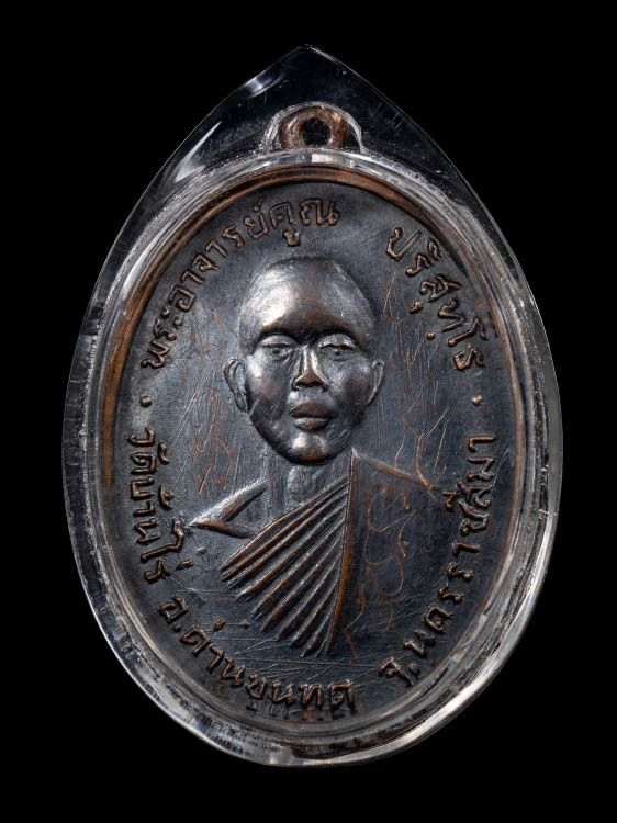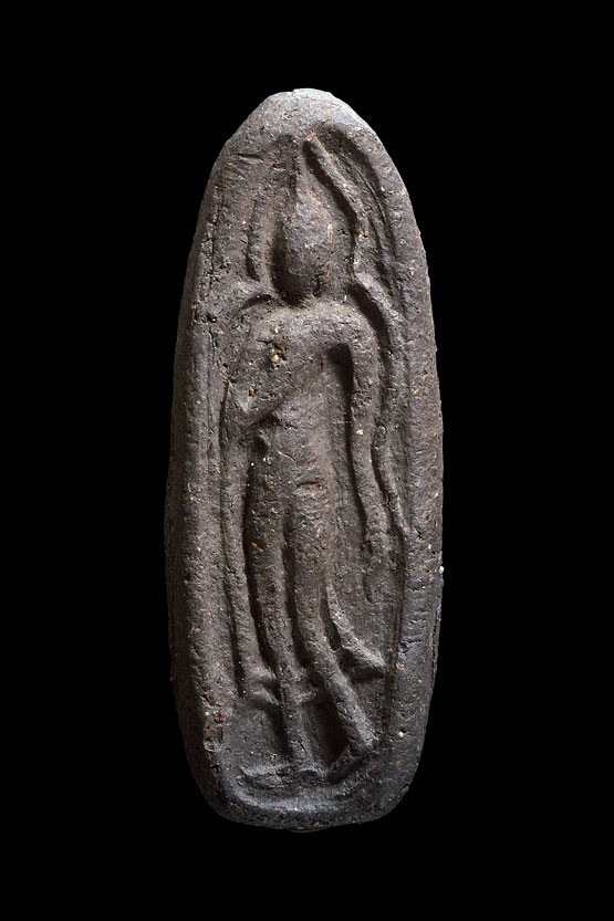 พระพิมพ์ปางลีลา ( เนื้อดินเผาดำ ) ที่ระลึกงานฉลองอุโบสถ วัดนครอินทร์ จ.นนทบุรี ปลุกเสกโดย หลวงพ่อคูณ พ.ศ.2527 ( จำนวนสร้างไม่เกิน 100-200 องค์ ) |