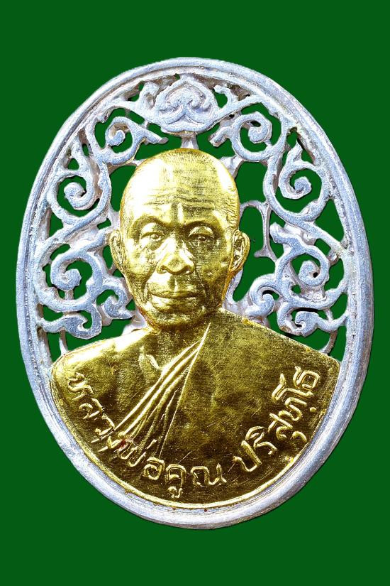 เหรียญลายฉลุ หลัง สก. หลวงพ่อคูณ วัดบ้านไร่ ปี 2536 เนื้อเงิน หน้ากากทองคำแท้ ผิวสวยเดิม (พระแกะจากเลี่ยมทองมาครับ) |
