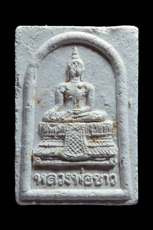 พระผงหลวงพ่อขาว วัดโบสถ์ บ้านกระทุ่ม สร้างหอสวดมนต์ จ.พระนครศรีอยุธยา ปลุกเสกเดี่ยวโดย หลวงพ่อคูณ พ.ศ.2537 ( กล่องเดิม ) |