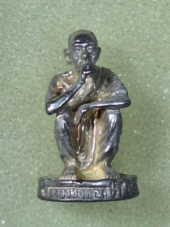 กรอบรูปบูชาตั้งโต๊ะ พิมพ์รูปเหมือนนั่งยองป้ายชื่อโค้ง ( กรอบโลหะ 5.5 x 7 นิ้ว + องค์หลวงพ่อเนื้อซิลิก้า ) พ.ศ.2536 |