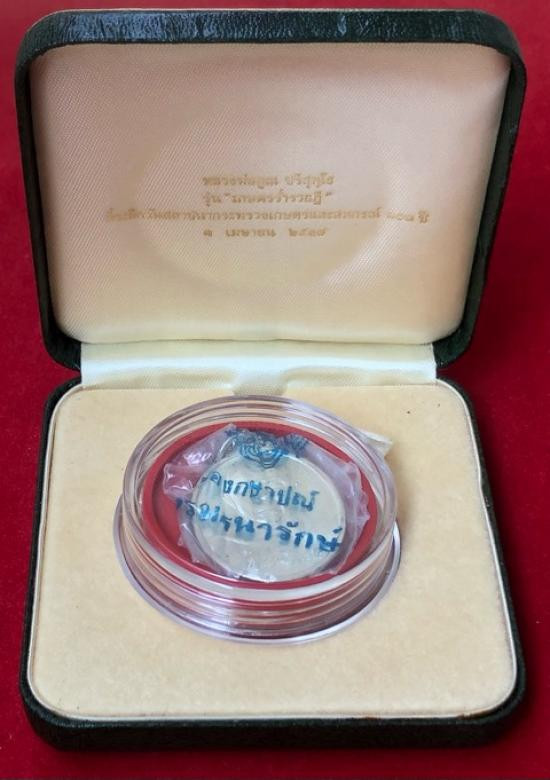 หลวงพ่อคูณ เหรียญเนื้อเงิน รุ่นเกษตรร่ำรวยฎี บล็อคกองกษาปณ์ ที่ระลึกวันสถาปนากระทรวงเกษตรฯ ปี38 พร้อมกล่อง |