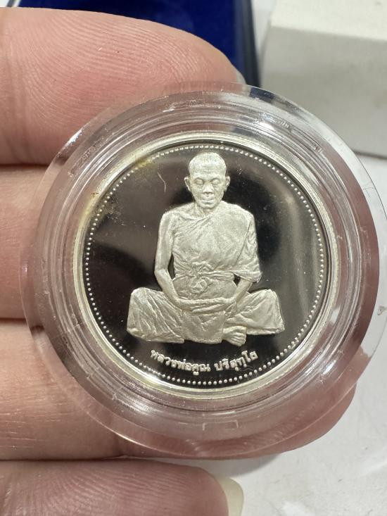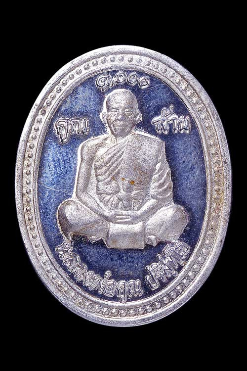 เหรียญรูปไข่พิมพ์นั่งสมาธิ รุ่น เสาร์ห้า คูณพันล้าน ( เนื้อเงินขัดเงา พ่นทราย ) หมายเลข 9888 พ.ศ.2537 |