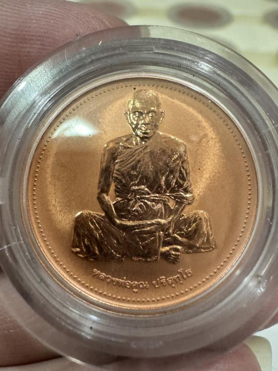 เหรียญนั่งพานหลวงพ่อคูณ วัดบ้านคลอง เนื้อทองแดง พร้อมกล่องเดิมๆ องค์ที่.1 |