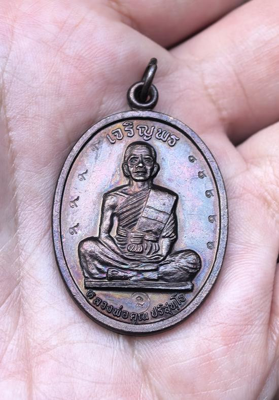เหรียญนั่งพานหลวงพ่อคูณ วัดบ้านคลอง เนื้อทองแดง พร้อมกล่องเดิมๆ องค์ที่.2 |