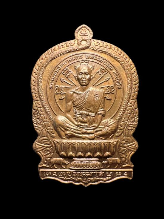 **แดง150***เหรียญหลวงพ่อคูณ-หลวงพ่อถนอม วัดเจริญพรตสร้าง เนื้อทองแดงรมดำ(มีจาร)ปี 2538 |