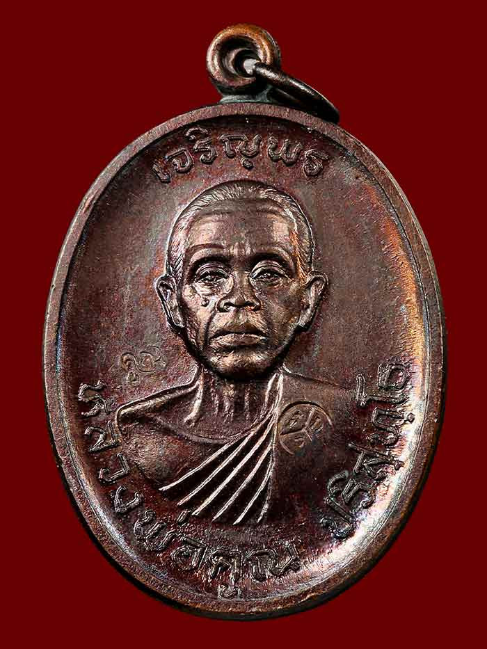 เหรียญเนื้อทองแดงรุ่น เจริญพรบนครึ่งองค์หลวงพ่อคูณ ปริสุทฺโธ ปี 2536 |