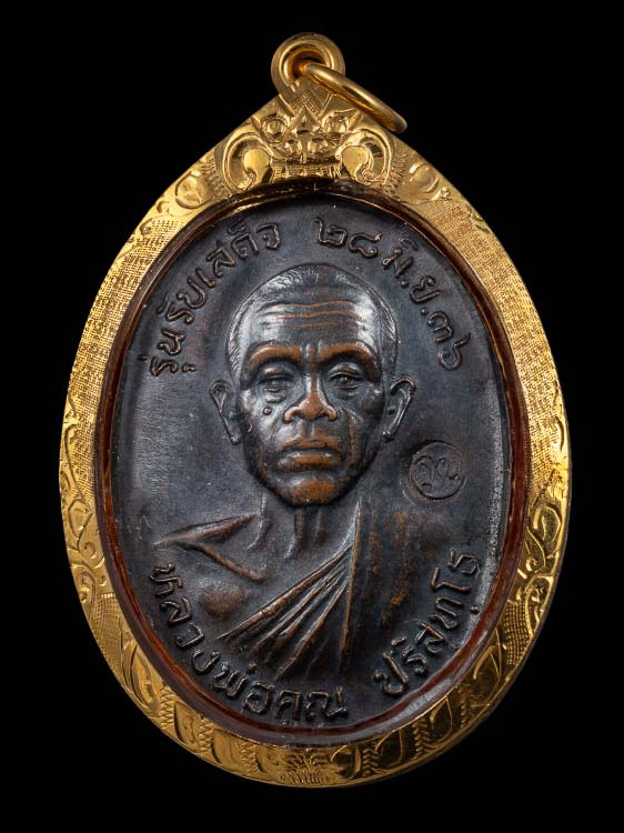 หลวงพ่อคูณรุ่นรับเสด็จ เนื้อทองแดงพิมพ์อ.แตก เลี่ยมทอง |