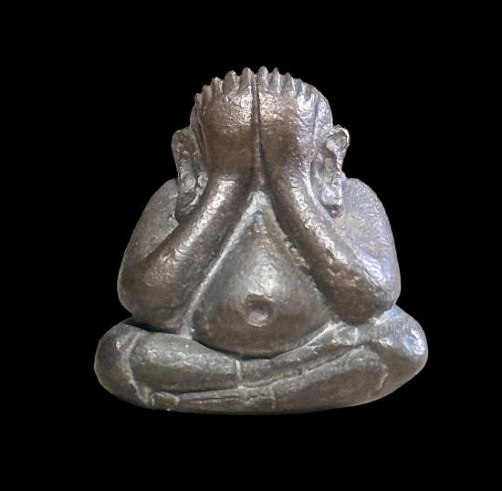 พระปิดตาสารพัดดี 3 ไตรมาส หลวงพ่อคูณ ปริสุทโธ ออกวัดบ้านคลอง ปี 2538 เนื้อผง(เทา) ฝังตะกรุดทองเหลือง ติดจีวร |