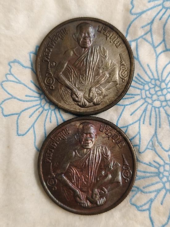 เหรียญขอบสตางต์ รุ่นมีกูไม่จน หลวงพ่อคูณ วัดบ้านไร่ หลังเจดีย์เกาะสีชัง ปี2539 เนื้อนวะ 2เหรียญ |
