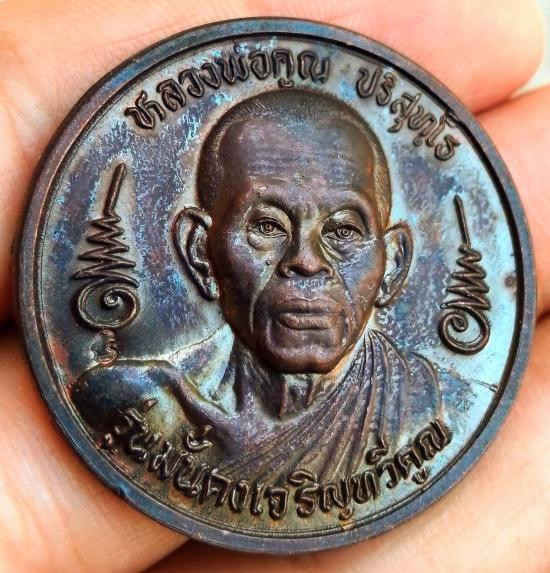 เหรียญนั่งพาน หลวงพ่อคูณ วัดบ้านคลอง เนื้อทองแดง ปี 2537 |