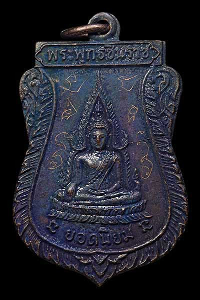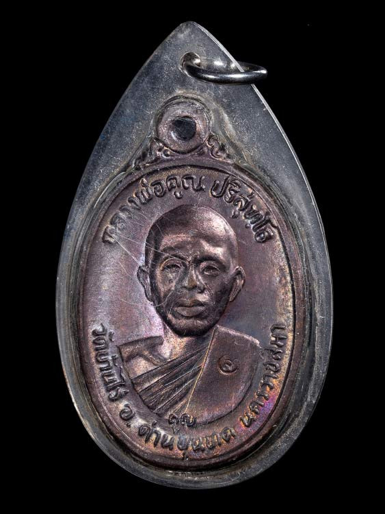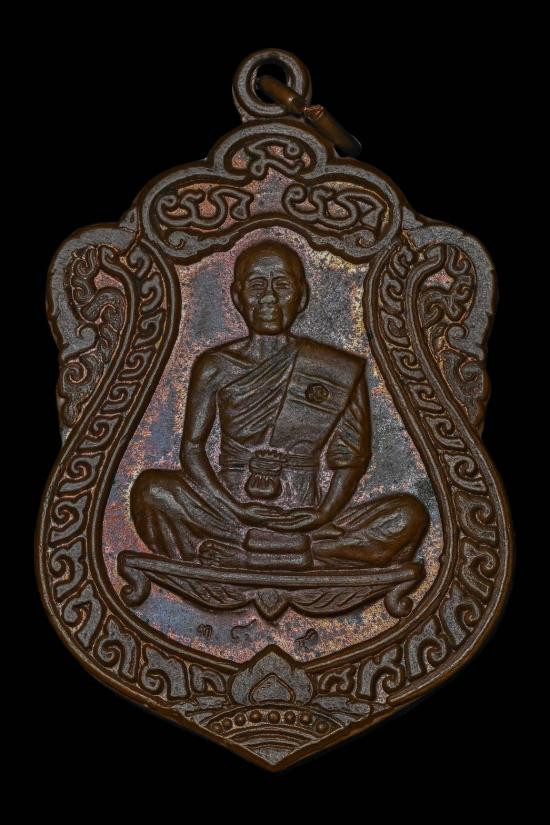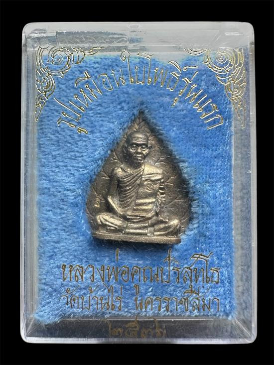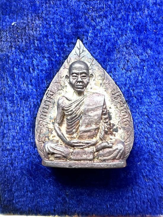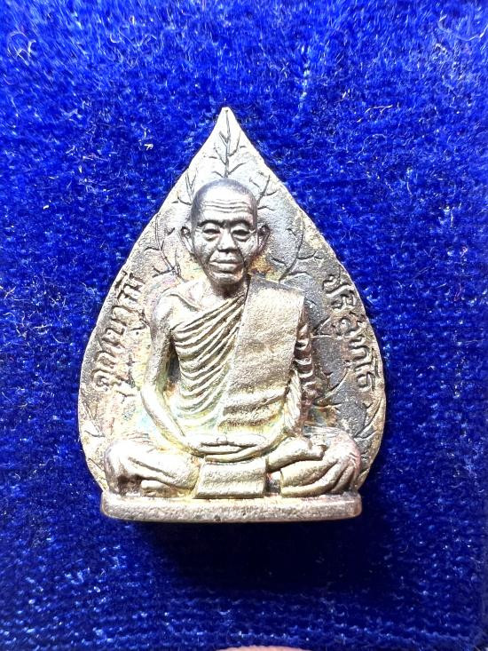 รูปเหมือนใบโพธิ์รุ่นแรก หลวงพ่อคูณ ปี 2536 เนื้อนวะโลหะ มีกล่อง |