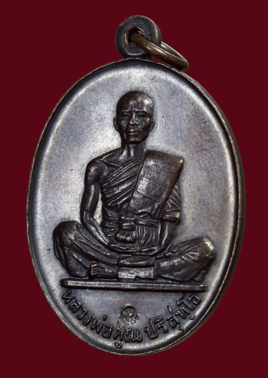 เหรียญหลวงพ่อคูณ ออกถ้ำดาวเขาแก้ว จังหวัดสระบุรี ปี 2522 เนื้อทองแดงรมดำ จารยันต์ด้านหน้าด้านหลัง สภาพตามรูปราคาเบาๆ |